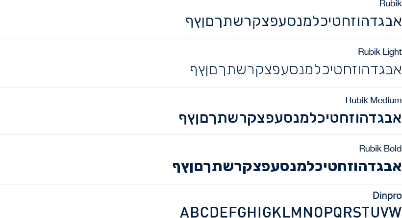 לחומרי שיווק, מיתוג וכותרות בשפה העברית - יש לעשות שימוש בפונט 'רוביק'.